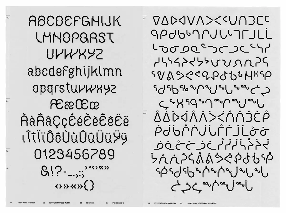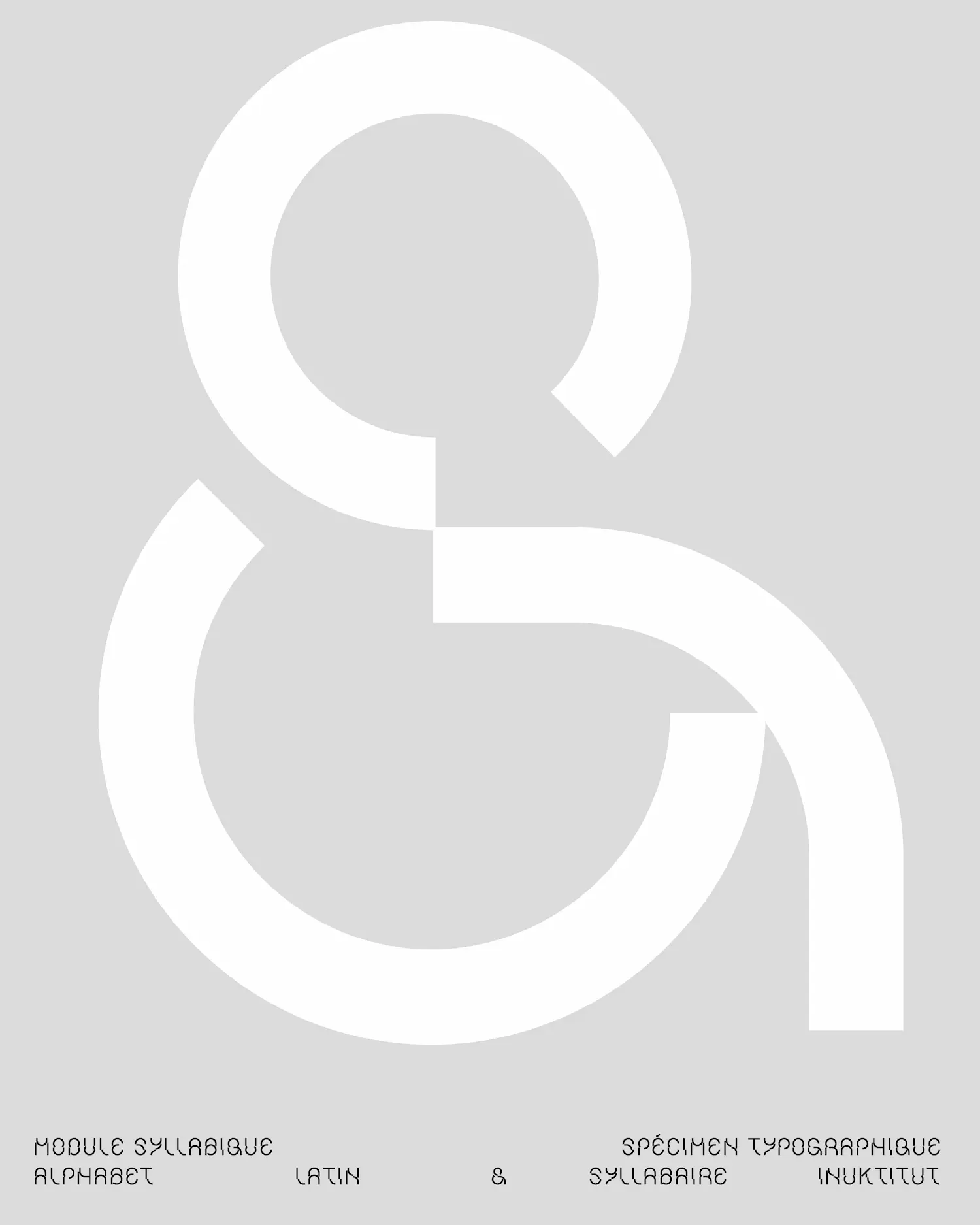 Module Syllabique est une création modulaire façonnée à partir de cercles et de bâtons, formes intrinsèques au syllabaire inuktitut. Elle déploie une esthétique à la fois expressive, géométrique et libre. Dans une démarche de rencontre, Module Syllabique aspire à offrir un espace significatif à la langue et à l’écriture inuktitut. Cette police de caractère cherche à tisser un lien harmonieux entre les systèmes d’écriture syllabique et latin, favorisant ainsi le dialogue et l’échange.